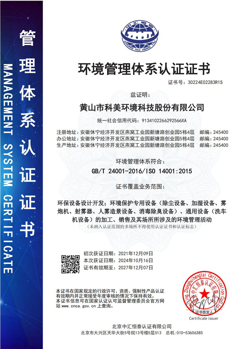 黃山市科美環境科技股份有限公司創建于2007年,是一家集科研、設計、生產、銷售、施工于一體的高科技環保工程技術企業。致力于改善空氣質量、環境溫濕度控制、空氣凈化處理設備制造的企業。
